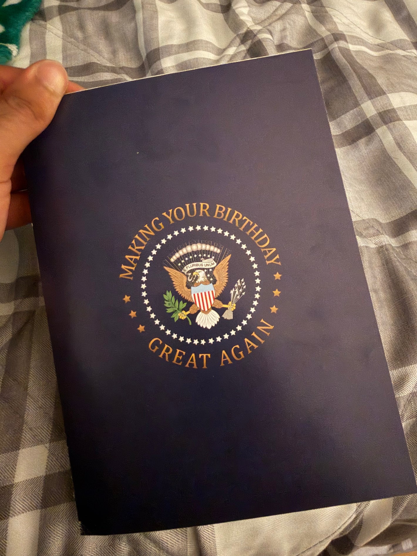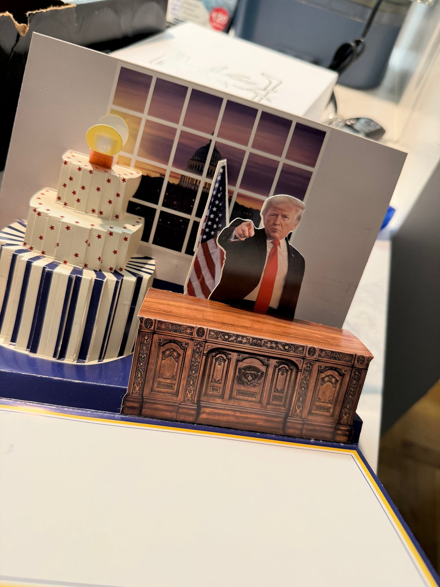 Any voices used in the card are parody-style recordings and not actual recordings of any public figure.